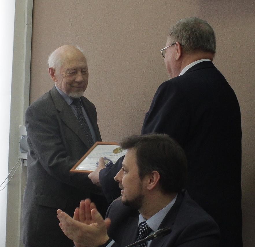 Памятная медаль «50-лет образования топографо-геодезической секции НТГО – ВО ГАСК – Росгеокарт» вручается научному руководителю Геофорума Нижний Новгород, профессору кафедры геоинформатики, геодезии и кадастра ННГАСУ, члену правления Нижегородского регионального отделения Российского общества геодезии, картографии и землеустройства Никольскому Евгению Константиновичу