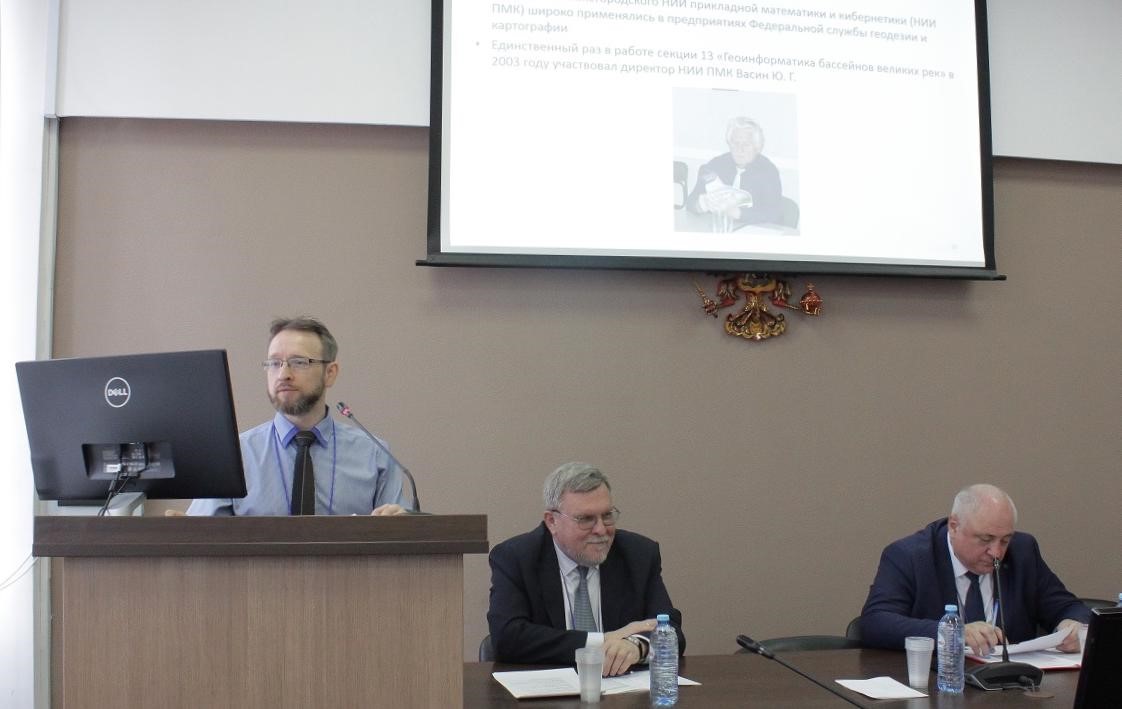 На пленарном заседании с докладом «Десятилетие науки и технологий. История и современность геодезии, картографии и геоинформатики в Нижнем Новгороде» выступил заведующий кафедрой геоинформатики, геодезии и кадастра ННГАСУ Чечин Андрей Вячеславович.