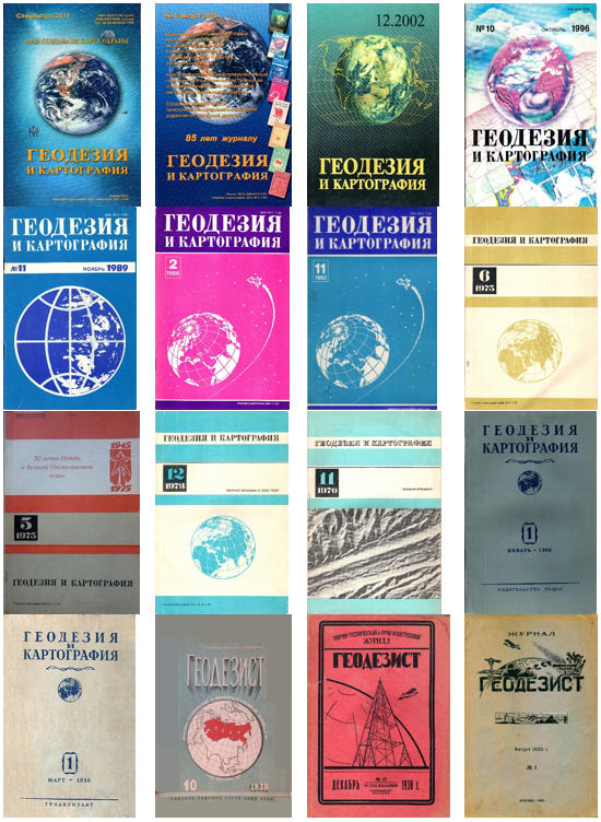 Но самым крупным событием в отечественной периодической печати явилось издание ежемесячного профессионального журнала «Геодезист», вначале как органа Военно-топографического и Высшего геодезического управлений, затем Главного управления государственной съемки и картографии и, наконец, Главного управления геодезии и картографии (ГУГК). Под таким названием он выходил с августа 1925 г. до конца 1940 г. В последующем, вплоть до 1950 г., вместо журнала «Геодезист» по мере накопления материала ГУГК выпускал «Сборник научно-технических и производственных статей по геодезии, картографии, топографии, аэросъемке и гравиметрии». С 1951 г. по решению ГУГК выпускались сборники статей по геодезии, по картографии, а с марта 1956 г. начал регулярно выходить ежемесячный научно-технический и производственный журнал «Геодезия и картография». Издателями журнала были в 1956 - 1963 гг. Геодезиздат, с января 1964 по март 1991 г. Недра, с апреля 1991 по декабрь 1992 г. Геодезиздат, с января 1993 по апрель 2005 г. Картгеоцентр-Геодезиздат, с мая 2005 по июль 2013 г. Картгеоцентр, с августа 2015 г. по настоящее время - Центр геодезии, картографии и ИПД.