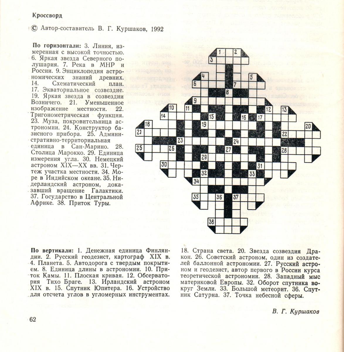 Рис. 7. Кроссворд в журнале «Геодезия и картография», составленный В. Г. Куршаковым в 1992 г.